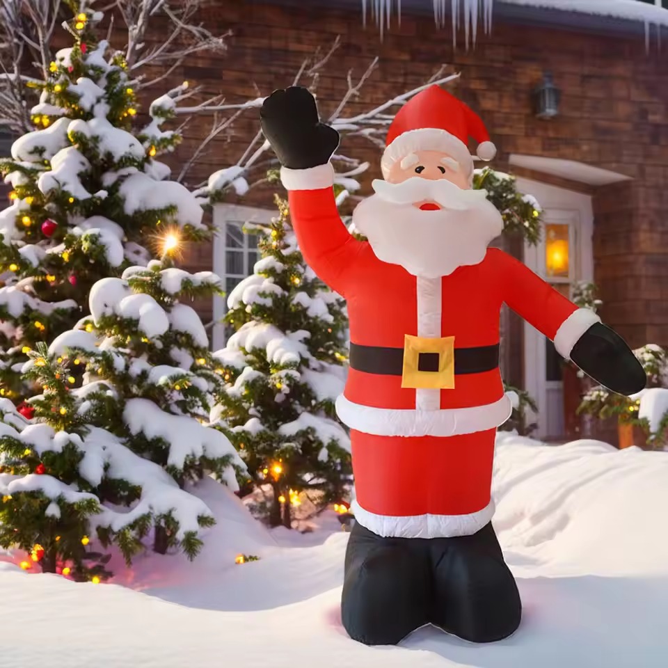 Made from premium polyester and plastic materials, the inflatable santa decor is built to withstand outdoor conditions. The sturdy construction ensures it stays in place while maintaining its vibrant look throughout the Christmas season. Perfect for gardens, storefronts, or family gatherings, it provides long-lasting holiday fun.
