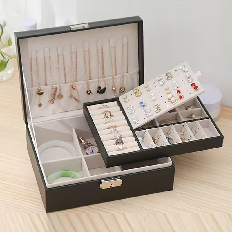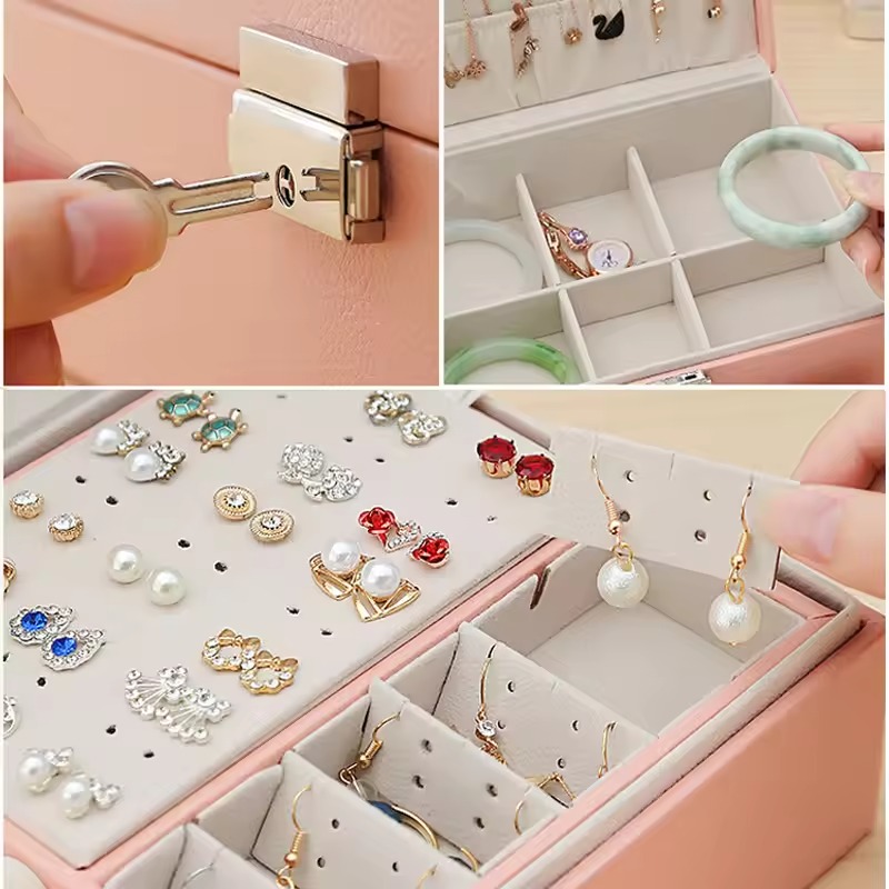 Organize your favorite accessories with ease using this beautifully crafted jewelry box. Made from premium synthetic leather and lined with soft bead velvet, it protects your rings, earrings, necklaces, and more from scratches, dust, and damage. Whether at home or on the go, this compact case keeps everything neatly in place. Perfect as a personal treat or a thoughtful gift, it’s a must-have for anyone who loves keeping their jewelry tidy and tangle-free.