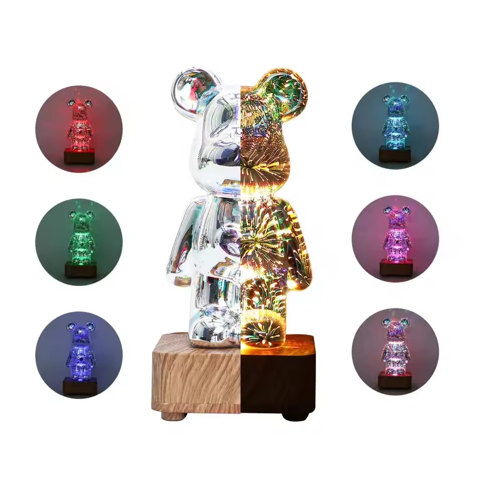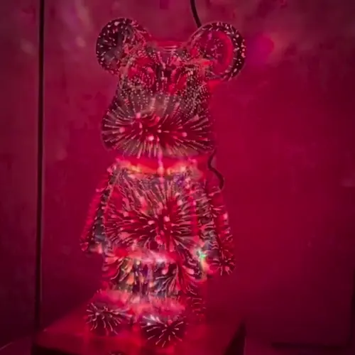 Create a dreamy, warm atmosphere with this adorable bear-shaped 3D fireworks night light—perfect for kids and adults alike. This LED bear light features a stunning three-dimensional fireworks effect that glows in vibrant colors, bringing charm and comfort to any room. Designed with a wooden base and eco-friendly glass shade, it’s USB powered and easy to use—making it a great decorative piece or heartfelt gift for any occasion.