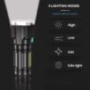⚡ 4 lighting modes – Switch between high brightness, low brightness, SOS, and COB side light for any situation
