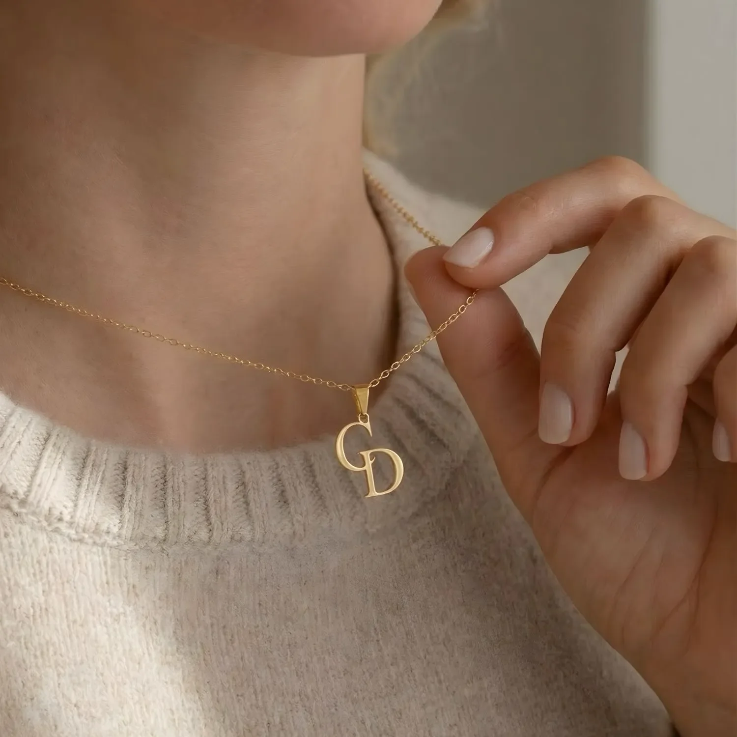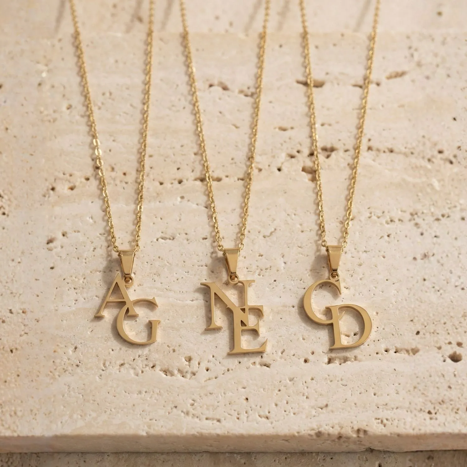 Elegant necklace that you can personalize with two or three letters of your choice. Wear the initials of yourself, your loved ones or someone close to you, creating a timeless piece of jewelry with a personal meaning.