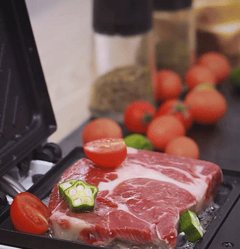 Add your ingredients (sandwich, eggs, or meat) on the non-stick plate.