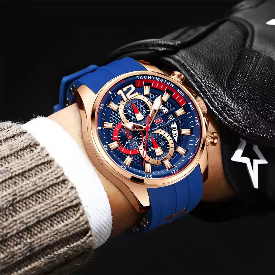 The luxury quartz watch combines style and function with a sleek, modern design. Its bold watch face and detailed chronograph give it a high-end look. Perfect for any occasion, it adds a touch of sophistication to your outfit.
