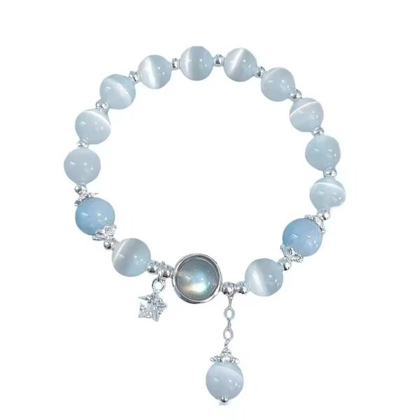 The moonstone star bracelet features a stunning moonstone that shimmers beautifully under any light. Its delicate star design adds a touch of elegance and uniqueness to your accessory collection. Perfect for casual or formal wear, it is a versatile piece for every occasion.
