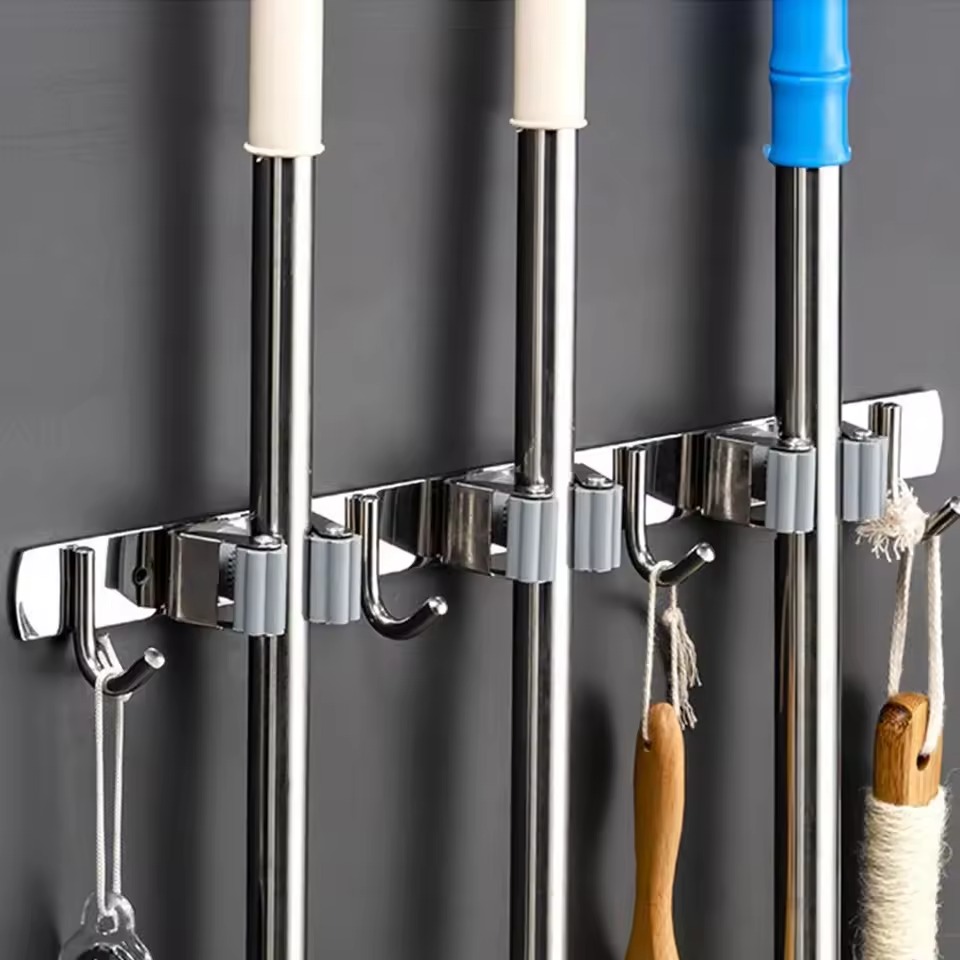 The mop holder is perfect for storing mops, brooms, rakes, and other tools, helping you keep your space tidy. Its compact design makes it ideal for use in kitchens, closets, garages, or even outdoor gardens.