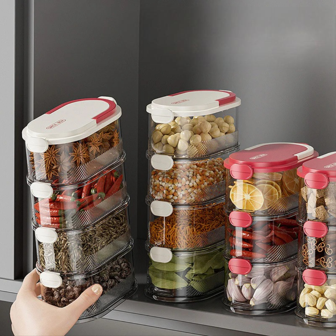 This multi-layer spice organizer helps you store and protect spices, herbs, and small kitchen items while saving space. Its sealed design keeps contents fresh, and the modern look fits perfectly into any kitchen.