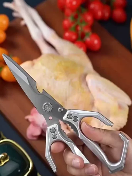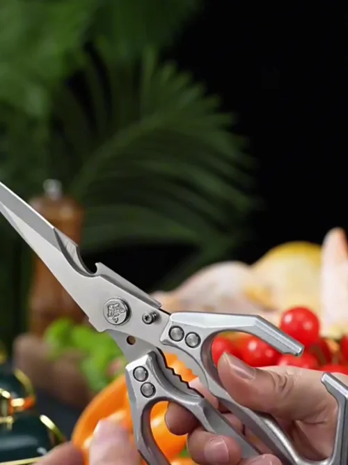 These multifunctional heavy-duty kitchen shears replace several tools in your kitchen and handle tough cutting tasks with ease. From meat and seafood to herbs and packaging, they save time, effort, and space during everyday cooking. Built with ultra high-carbon stainless steel blades, these shears stay sharp and strong even with heavy use. The ergonomic handle makes them comfortable to use, while the easy-clean design keeps your kitchen hygienic and hassle-free.