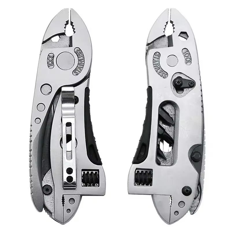Never be caught without the right tool again. This compact multitool combines pliers, screwdriver, wrench, knife, saw, and spanner into one portable device that fits easily in your pocket or bag. Perfect for repairs, outdoor adventures, camping, survival situations, and everyday fixes around the house or car.