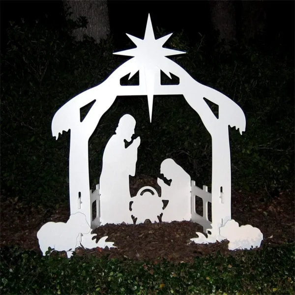 Crafted from 1/2-inch marine-grade PVC, the outdoor nativity set is built to last through all types of weather. Its sturdy materials and included staking kit ensure stability, even in wind and rain. This makes it a reliable display for years to come.