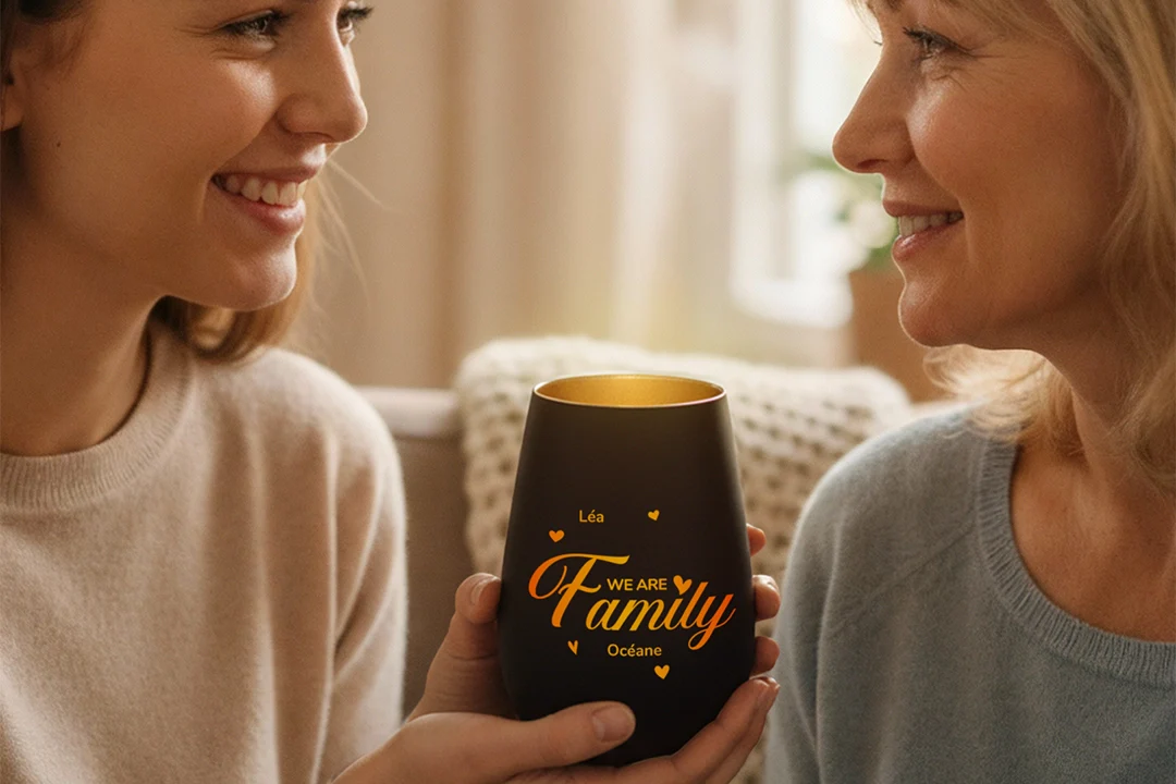 We engrave up to 20 first names on matte glass, with an elegant finish that enhances your interior. A durable engraving that keeps your family ties alive over the years.