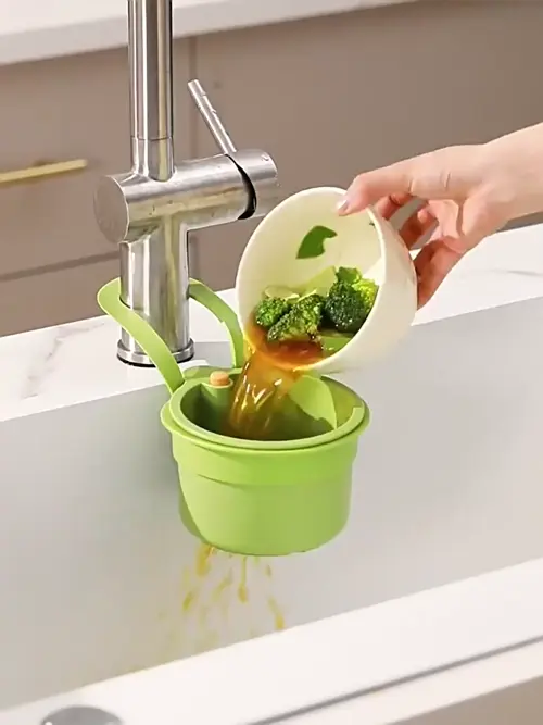 This push-press sink filter basket makes kitchen cleanup easier than ever. It hangs directly on your faucet, allowing fruits, vegetables, and food waste to drain neatly into the sink. No more wet messes, clogged drains, or dirty countertops — just simple, efficient kitchen organization.