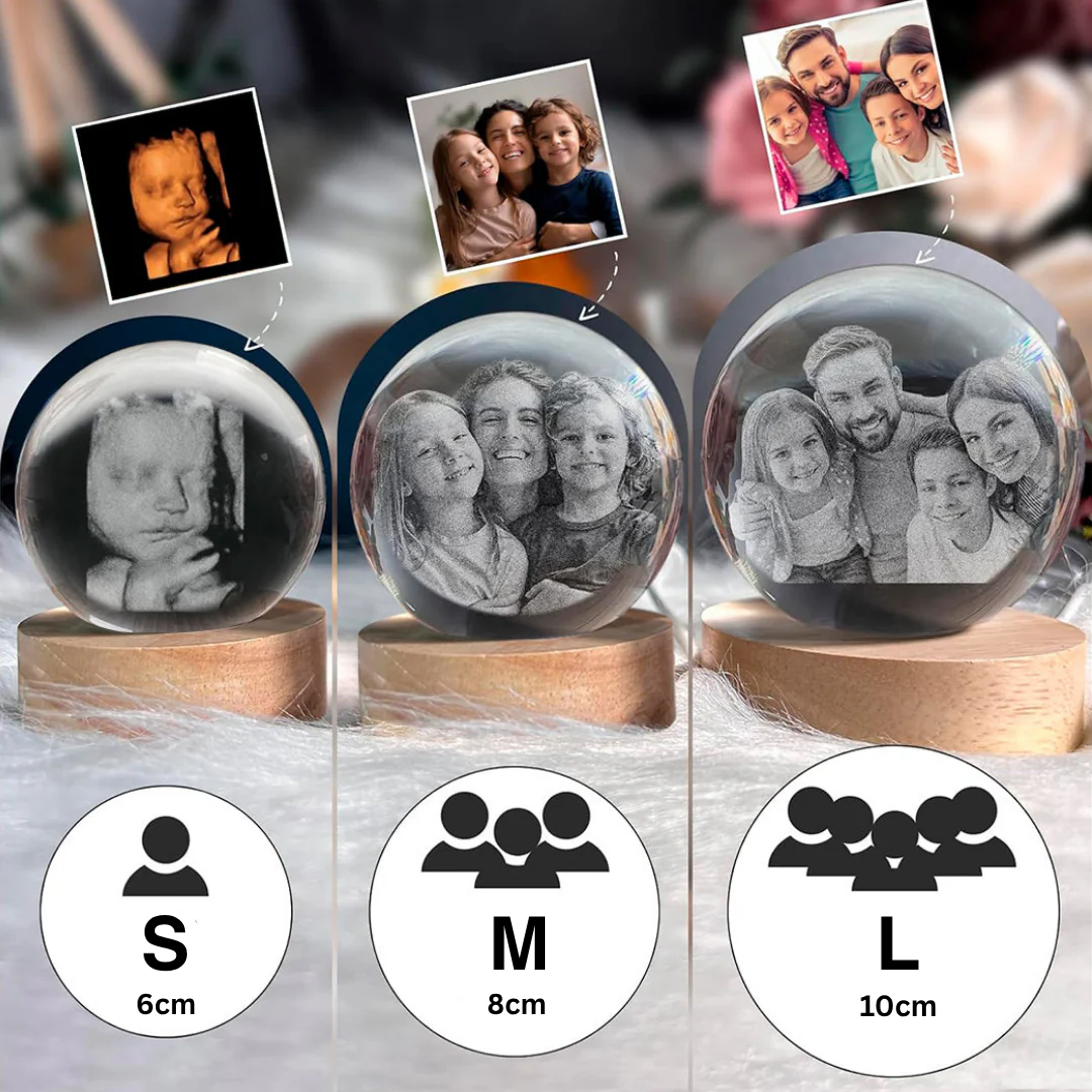 Your image β finely engraved into pure crystal glass, illuminated by soft, warm light.