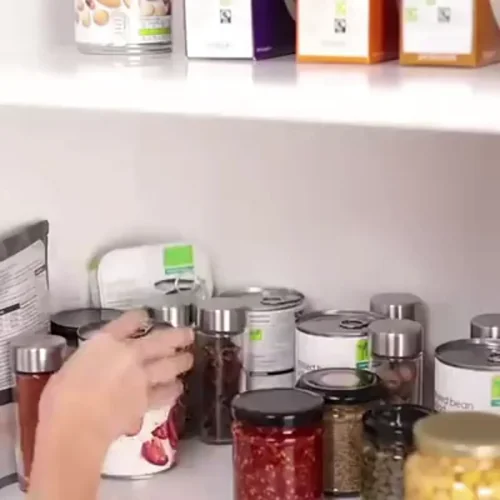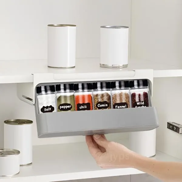 This spice organizer slides under your shelf to store spices and small kitchen items neatly. It helps you free up drawer and counter space while keeping everything easy to reach and well organized. A simple and space-saving solution for a cleaner, more organized kitchen.
