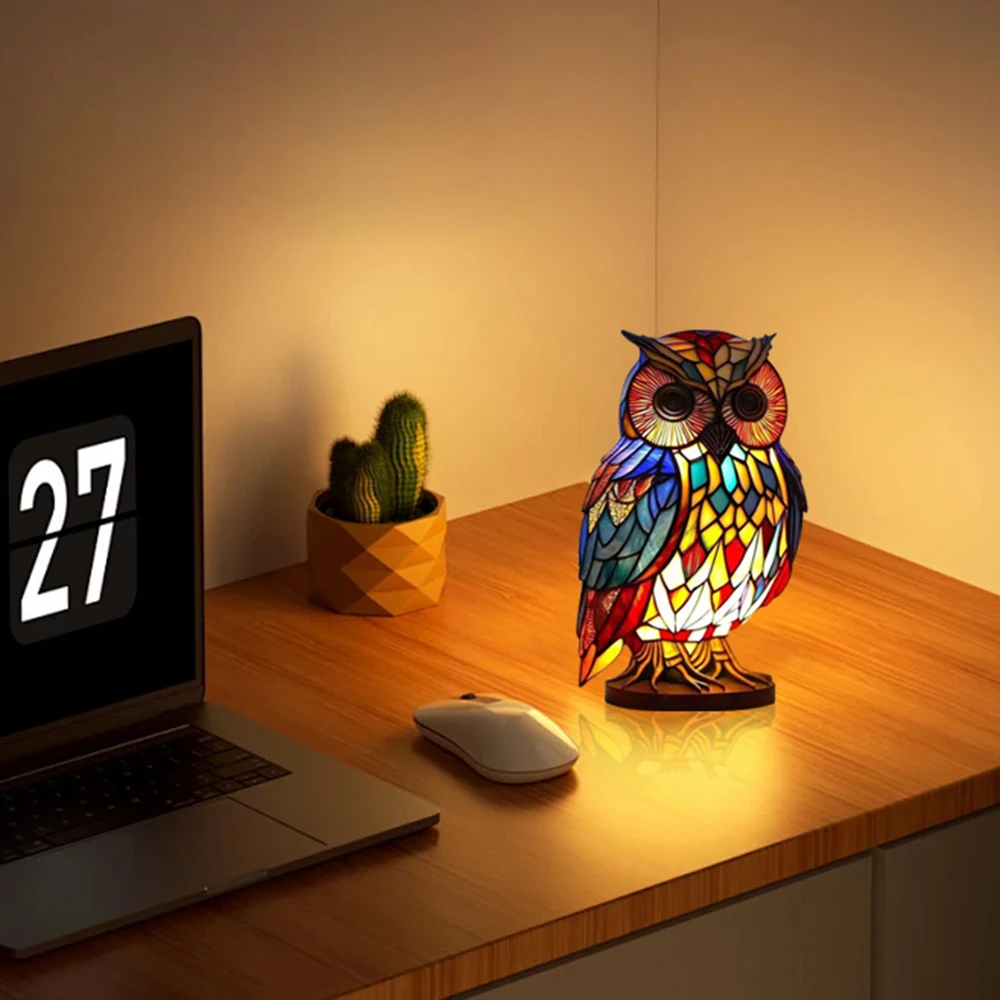 💡 Light up your space – with the stained glass animal table lamp! 🦉