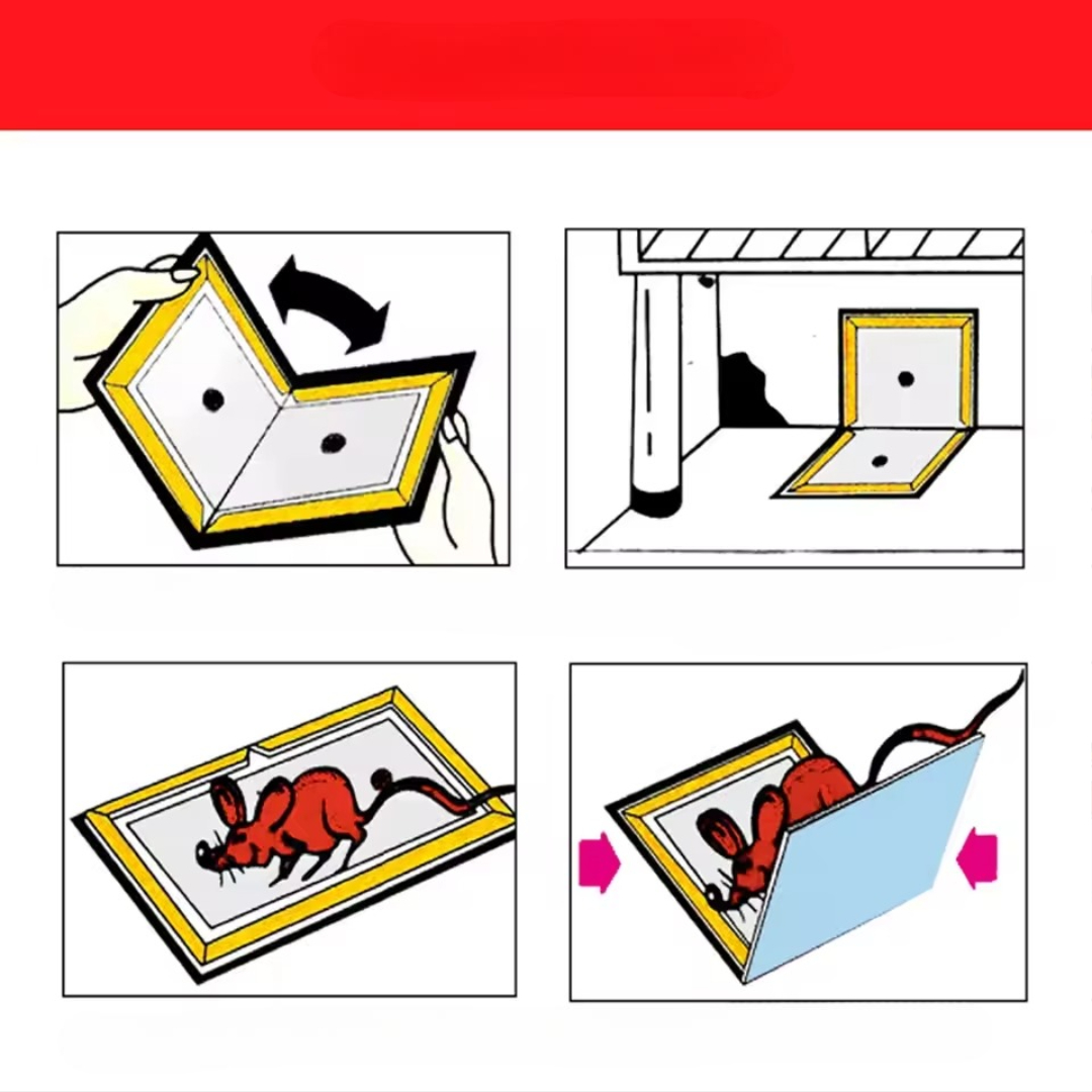 This sticky rodent traps use industrial-grade glue and built-in attractant to capture mice and other household pests fast. With flexible folding designs and a waterproof base, they work in tight corners, under appliances, and along walls — keeping your home clean and pest-free without chemicals.
