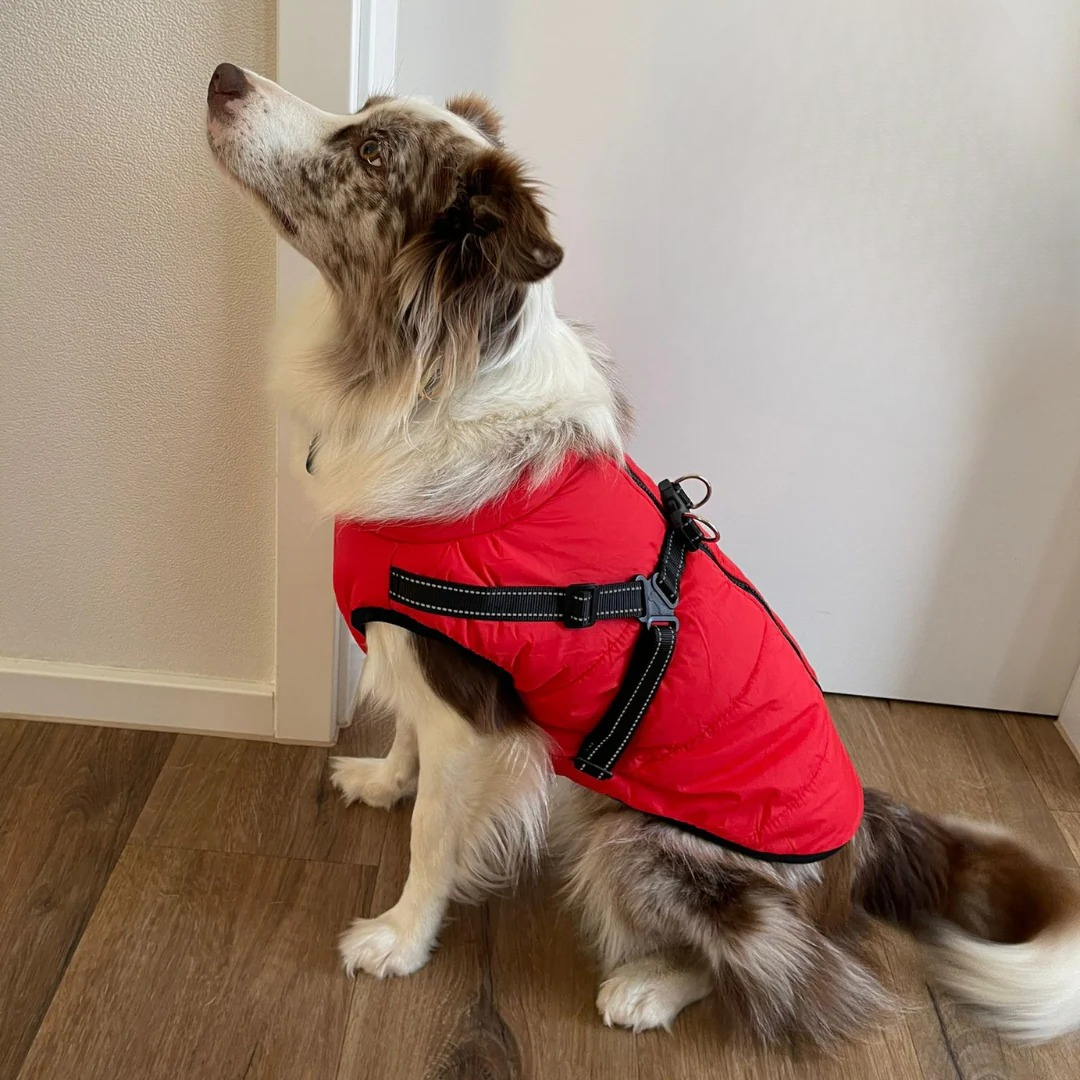 This dog coat is not only functional, but also a real eye-catcher. It is made of high quality, water-repellent Materials made to keep your dog dry when it rains. The breathable interior make sure your four-legged friend doesn’t overheat even on warmer days. No matter whether it’s pouring rain or a cool wind – with this coat your dog will always stay comfortable.