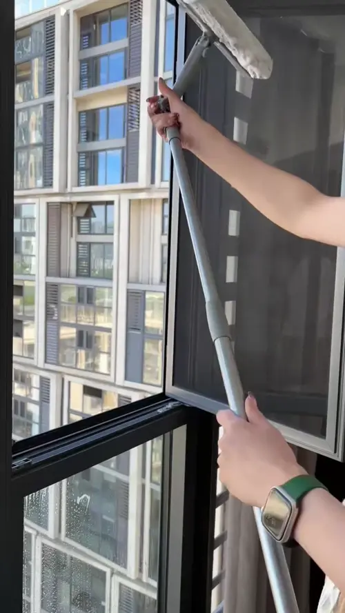 Keep your windows spotless without stepping outside. This smart window cleaning tool helps you safely clean exterior high-rise windows from inside your home. Its double-sided design removes dirt and streaks easily — giving you sparkling, streak-free glass every time.